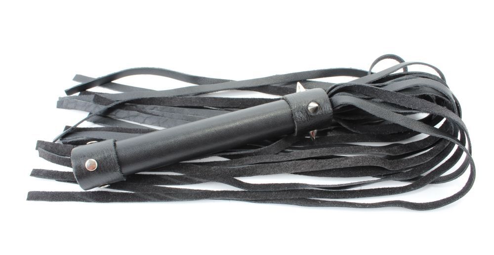 Плеть выполнена из натуральной кожи черного цвета. Ручка обтянута гладкой кожей и декорирована шипами. Количество хвостов - 20 штук. Стильный аксессуар поможет воплотить эротические фантазии в реальность. Длина хвостов - 28 см.