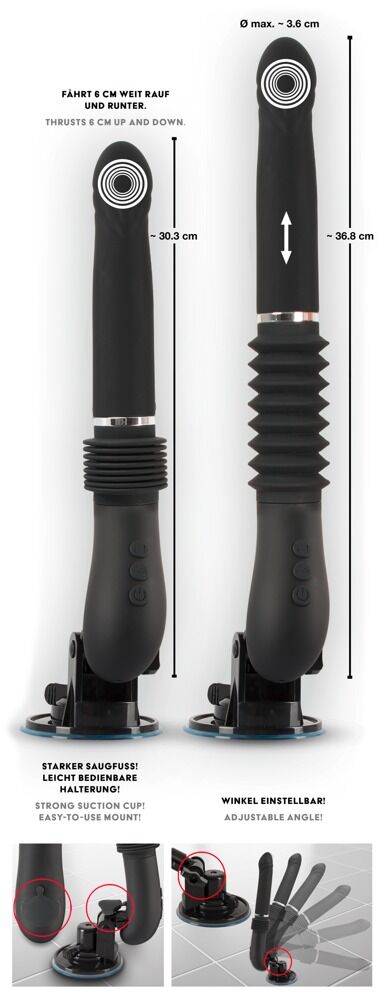 Вибратор RC Fucking Machine 2.0 со съемным, регулируемым по углу наклона основанием на присоске, которое прочно и надежно прилипает к любой гладкой поверхности для удовольствия без рук. 7 режимов вибрации и 3 режима фрикций могут управляться отдельно и в комбинации с беспроводным пультом дистанционного управления (с замком-ключом) - даже вашим партнером. С мягкой на ощупь поверхностью, бархатистый силиконовый ствол с выраженной головкой обеспечивает беззаботное, плавное удовольствие от толчков. Вибратор и пульт дистанционного управления перезаряжаемые - USB-кабель для зарядки входит в комплект. Длина фрикции - 6,5 см.