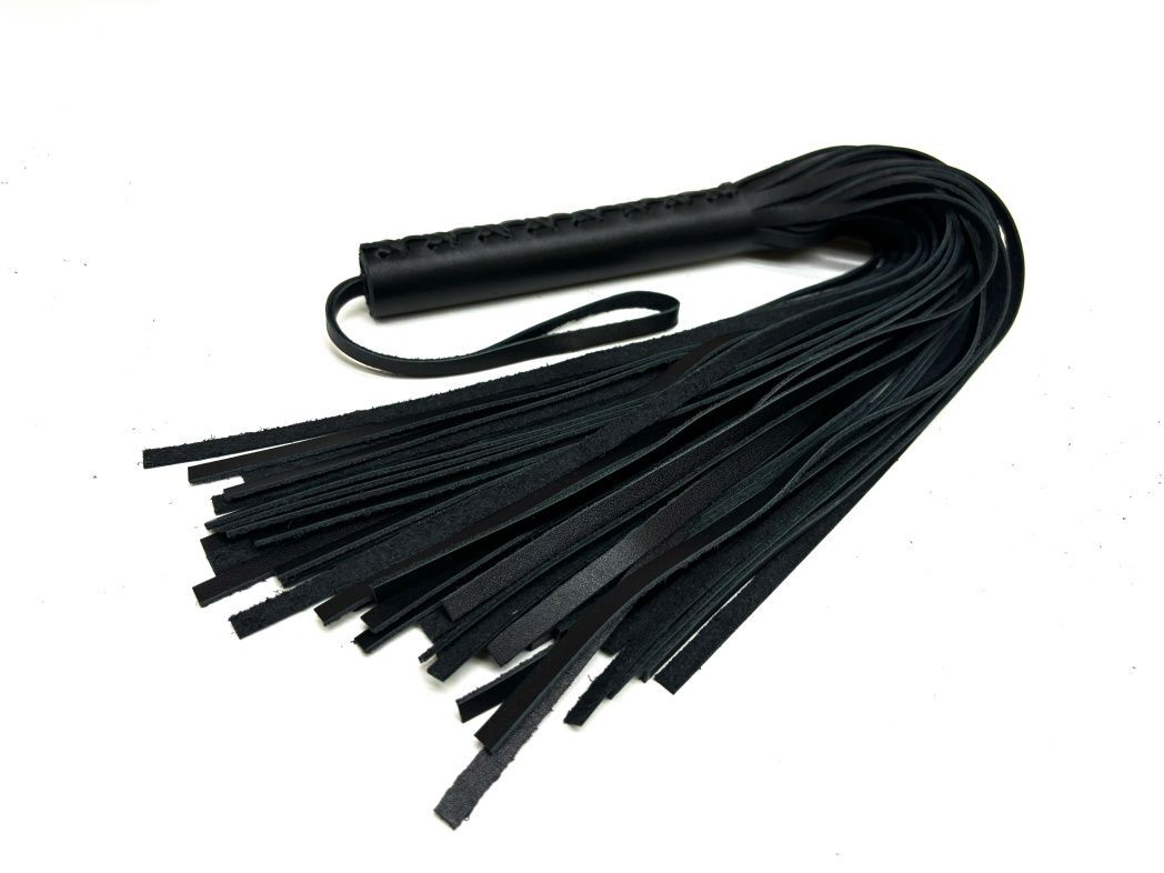 Черная цельная многохвостовая плеть из мягкой кожи - 57 см.