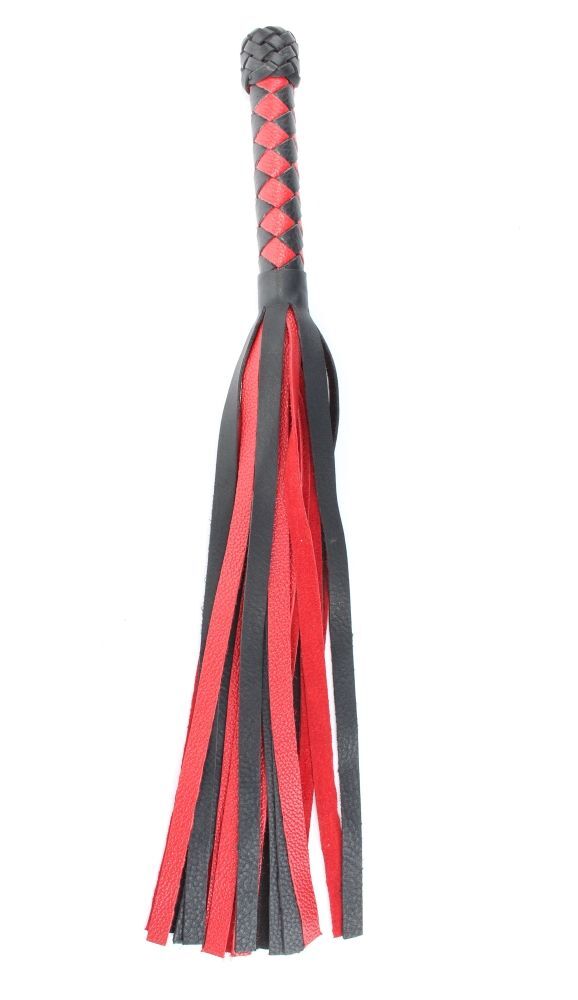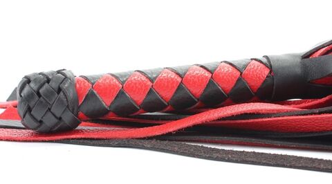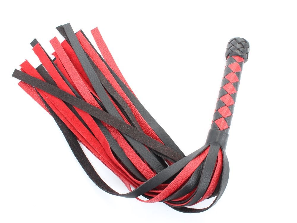 Плеть выполнена из натуральной кожи черного и красного цветов. Черно-красное плетение в виде ромбов на рукоятке, длинные широкие хвосты делают аксессуар эффектным. Количество хвостов - 24 штуки. Возбуждающая воображение плеть поможет воплотить задуманное в реальность. Длина хвостов - 40 см.