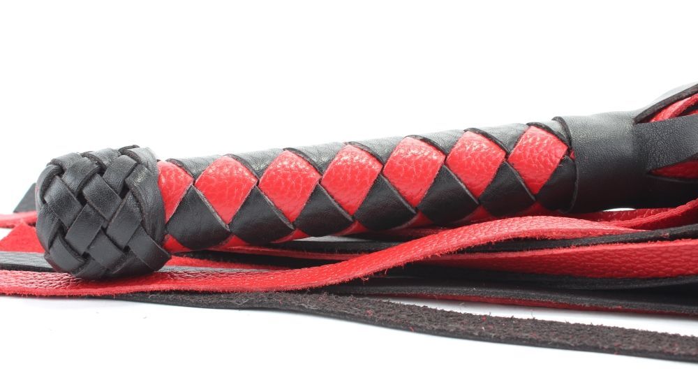 Черно-красная плеть с плетеной ромбовидной ручкой - 60 см.