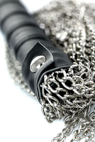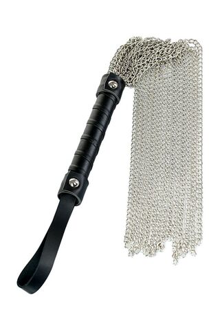 Потрясающий по воздействию и созданию антуража флоггер! Хвосты из серебристых цепочек в умелых руках могут и разогревать и холодить и наказывать. Длина ручки - 15,5 см.