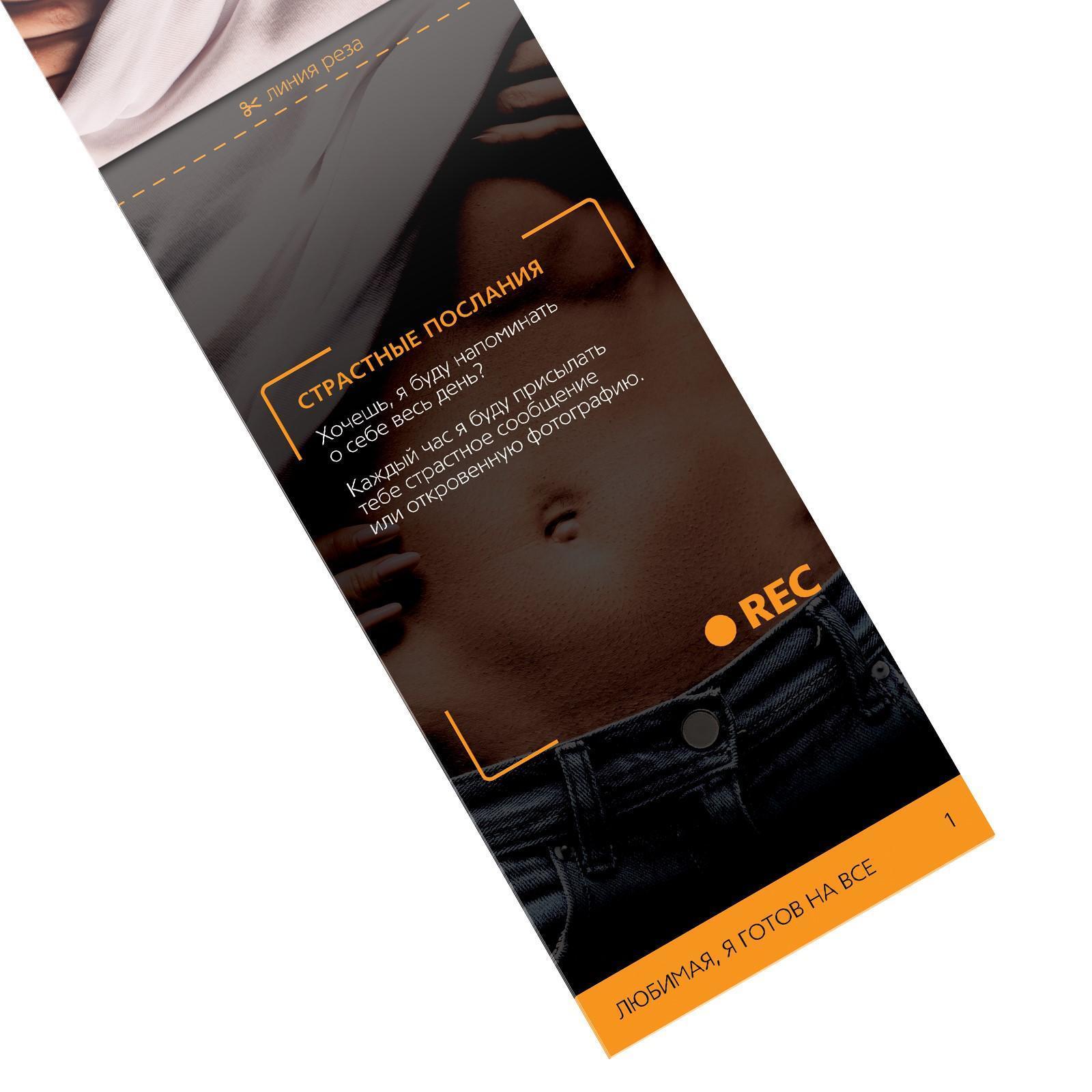В наборе вы найдёте купоны, которые отдадут вас целиком во власть желаний возлюбленной. Девушка открывает любую понравившуюся карточку и вручает её вам, когда захочет. Вы же обязуетесь воплощать все горячие фантазии любимой! В набор входят 20 купонов.