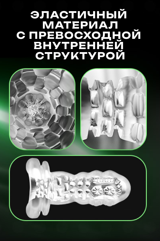 Рукав изготовлен из эластичного и мягкого 3D ТПЕ материала (менее пористый чем обычный ТПЕ). Он не содержит фталатов и обеспечивет приятные тактильные ощущения. Использовать мастурбатор рекомендуется только с лубрикантом на водной основе. Включить игрушку можно трехсекундным нажатием на кнопку включения. Все режимы отображаются на экране.