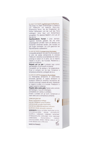 Продукт изготовлен во Франции из 89,98% ингредиентов натурального происхождения, дерматологически протестирован, поддерживает естественный pH и подходит для всех типов кожи и слизистых оболочек, даже самых чувствительных. Любовный эликсир не тестируется на животных и подходит для веганов. 30 мл.