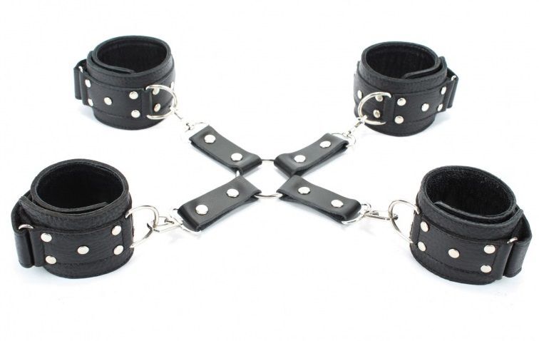 Комплект фиксаторов для рук и ног – это возможность провести жаркую ночку, играя в покорную рабу и господина. БДСМ-атрибутика состоит из кожаных поножей и наручников, соединенных между собой карабинами и цепями. Их размер легко откорректировать липучкой. Наручники подойдут на обхват руки от 15 до 20 см, оковы подойдут на обхват от 19 до 25 см. Этот набор БДСМ позволит сковать руки и ноги за спиной и отдать попку/вагину на страстное растерзание. Ширина наручей и поножей – 5 см.