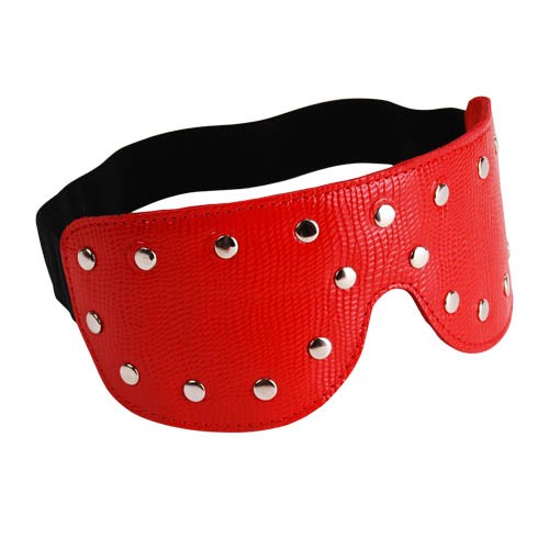 Красная кожаная маска на глаза с клёпками и велюровой подкладкой