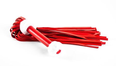 Роскошная плеть из натуральной кожи красного цвета с декором в виде белоснежного меха. Очень красивый и функциональный аксессуар! Плеть пышная - 33 хвоста. Длина ручки - 17 см.