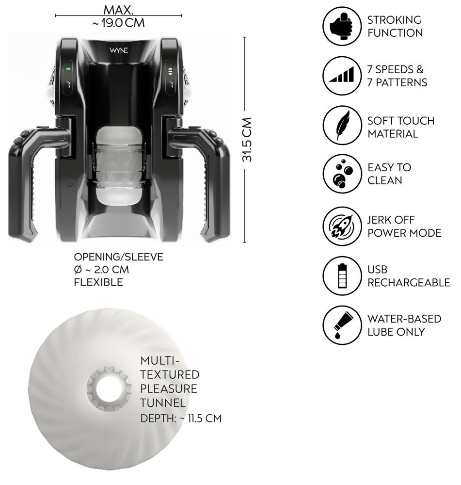 Очень мягкий, эластичный рукав нейтрального цвета оснащен бесчисленными мягкими структурами внутри, которые массируют пенис по всей длине. Открытую с обеих сторон насадку можно снять для легкой очистки, а также использовать самостоятельно для мануального хэндджоба. Перезаряжаемая - USB-кабель для зарядки входит в комплект.