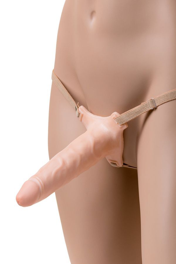 Фаллопротез фиксируется на бедрах при помощи эластичных ремешков, благодаря чему подходит для мужчины любого размера.